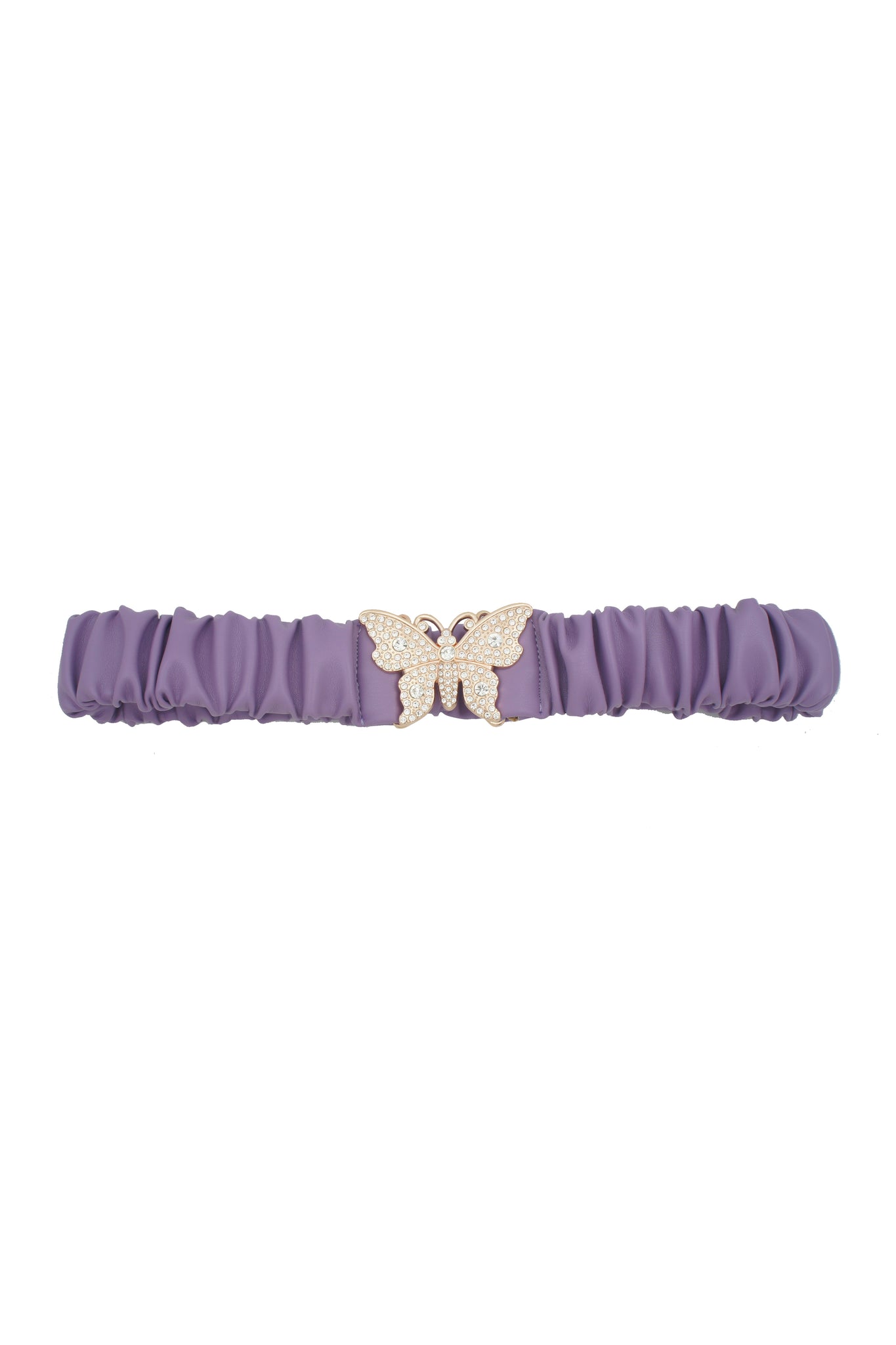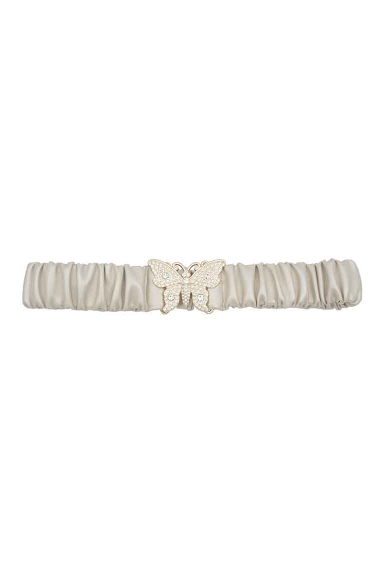 RHINESTONE PAVE BUTTERFLY RUCHED ELASTIC BACK BELT