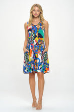 Crafted from ITY fabric, this V-neck tank dress features a flattering bias cut that skims the body beautifully. Functional side pockets enhance its everyday appeal, while the bold print adds standout style. A sleeveless silhouette makes it ideal for warm days or layered looks. Proudly made in the USA.