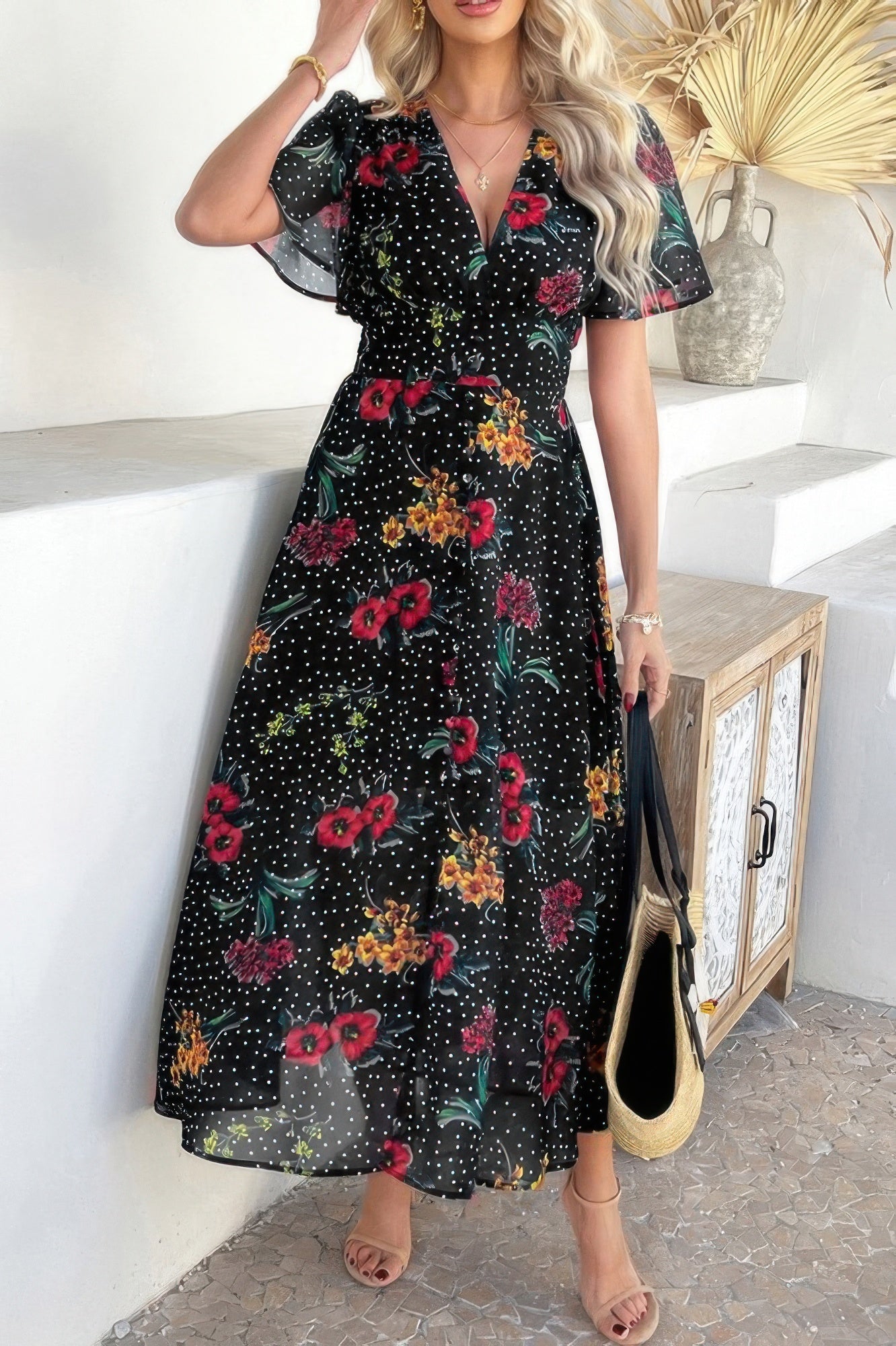 Feminine and flattering, this floral wrap dress is a timeless staple for sunny days and casual outings. Crafted from 100% polyester, it offers a smooth, lightweight feel with a gentle drape. The V-neckline and short sleeves create a balanced, breezy silhouette, while the tied wrap design cinches at the waist for a personalized fit. Decorated with a soft floral print, this dress blends comfort and charm with ease. Perfect for brunch, vacation strolls, or relaxed weekends, it’s a go-to piece for effortless style.