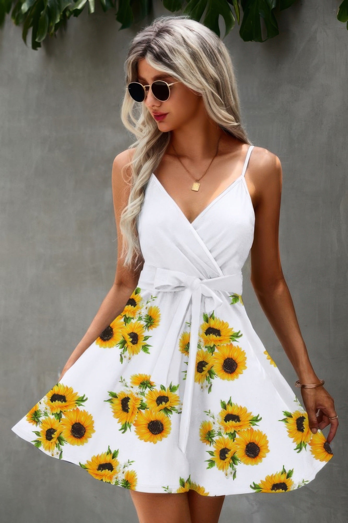 Step into sunny days with this floral cami dress, designed with delicate spaghetti straps and a flattering V-neckline. The included belt cinches the waist to create a defined, feminine shape, while the lightweight fabric offers easy movement and all-day comfort. A perfect balance of soft florals and breezy style, this dress is a go-to for warm-weather adventures. Made with a blend of polyester and spandex, it provides just the right amount of stretch and drape. Ideal for vacations, outdoor gatherings, or casual outings, this piece brings a fresh, seasonal feel to your wardrobe.