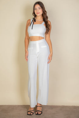 Bustier Crop Top & Front Slit Wide Leg Pants