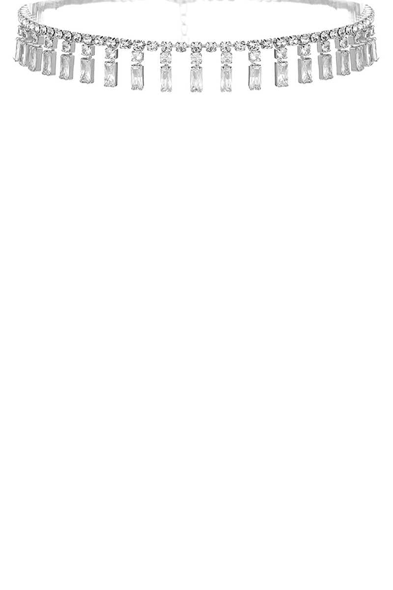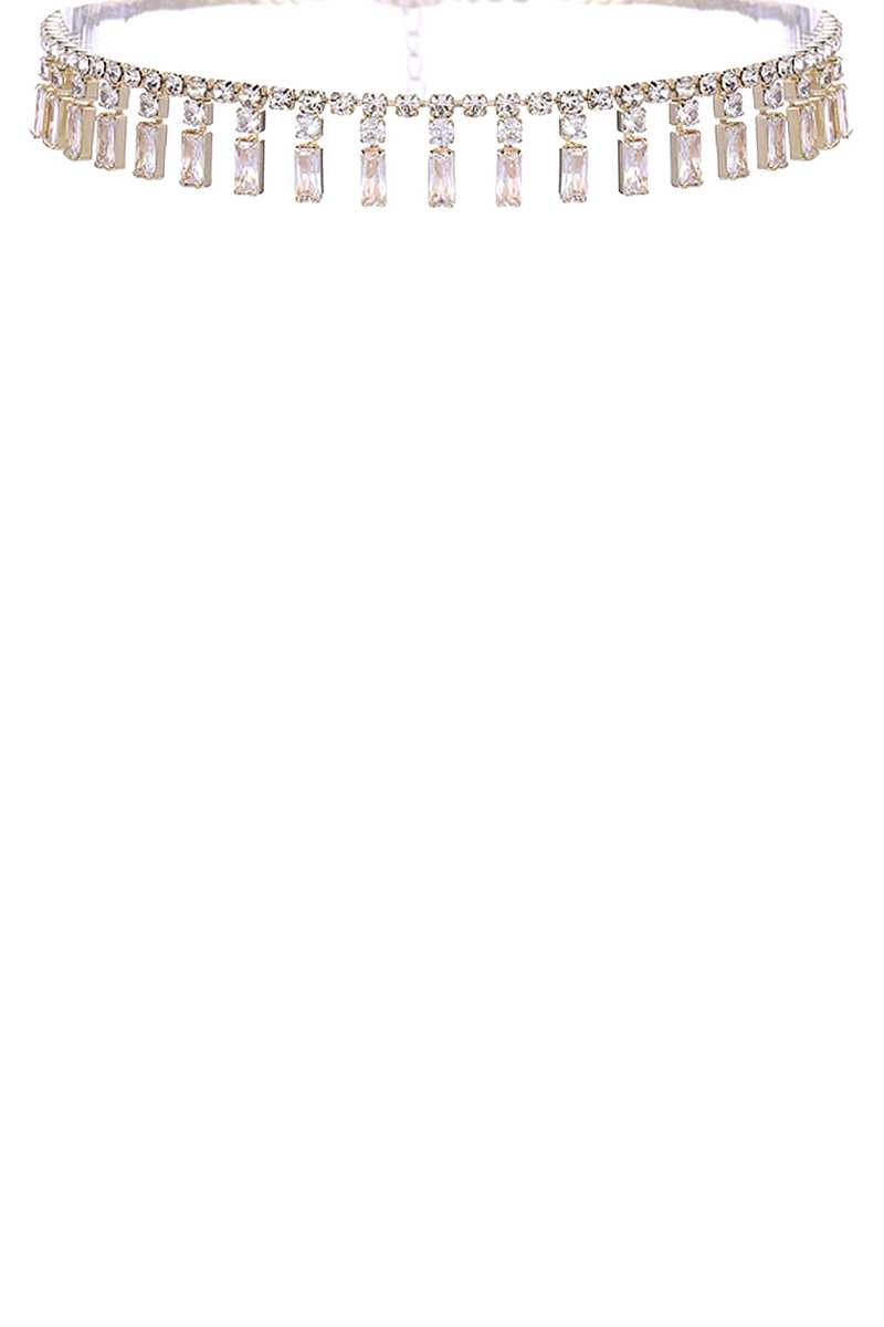 Imported CRYSTAL BAGUETTE PIANO CHOKER NECKLACE Gold. Silver FBJ