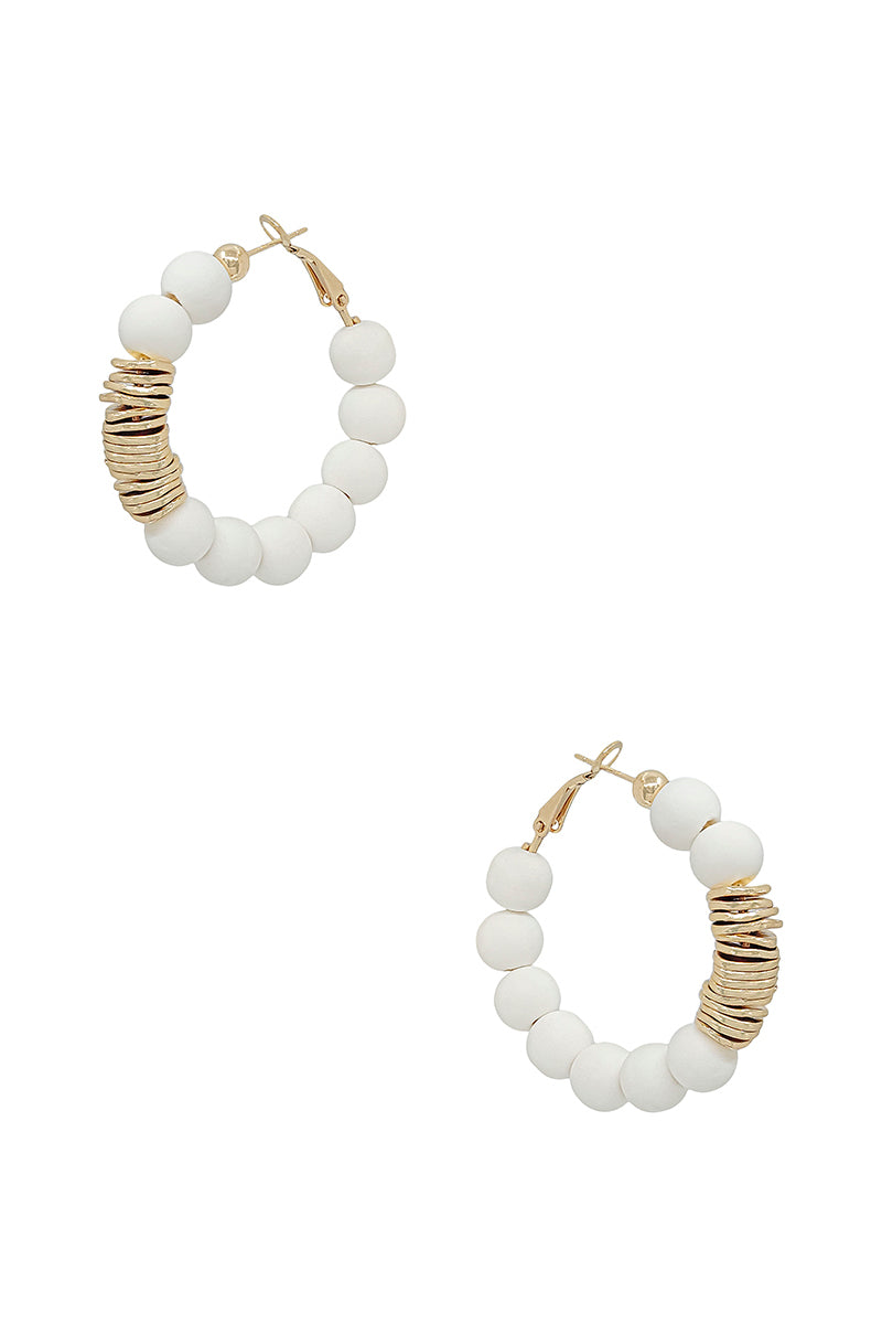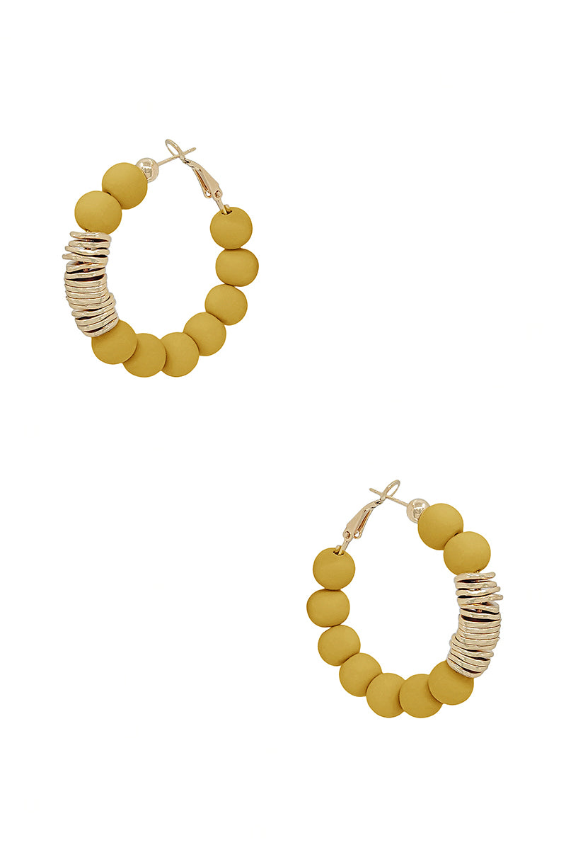 Imported CLAY BALL WITH METAL ACCENT HOOP EARRING Navy.White.Green.Mustard.Black.Wine FBJ