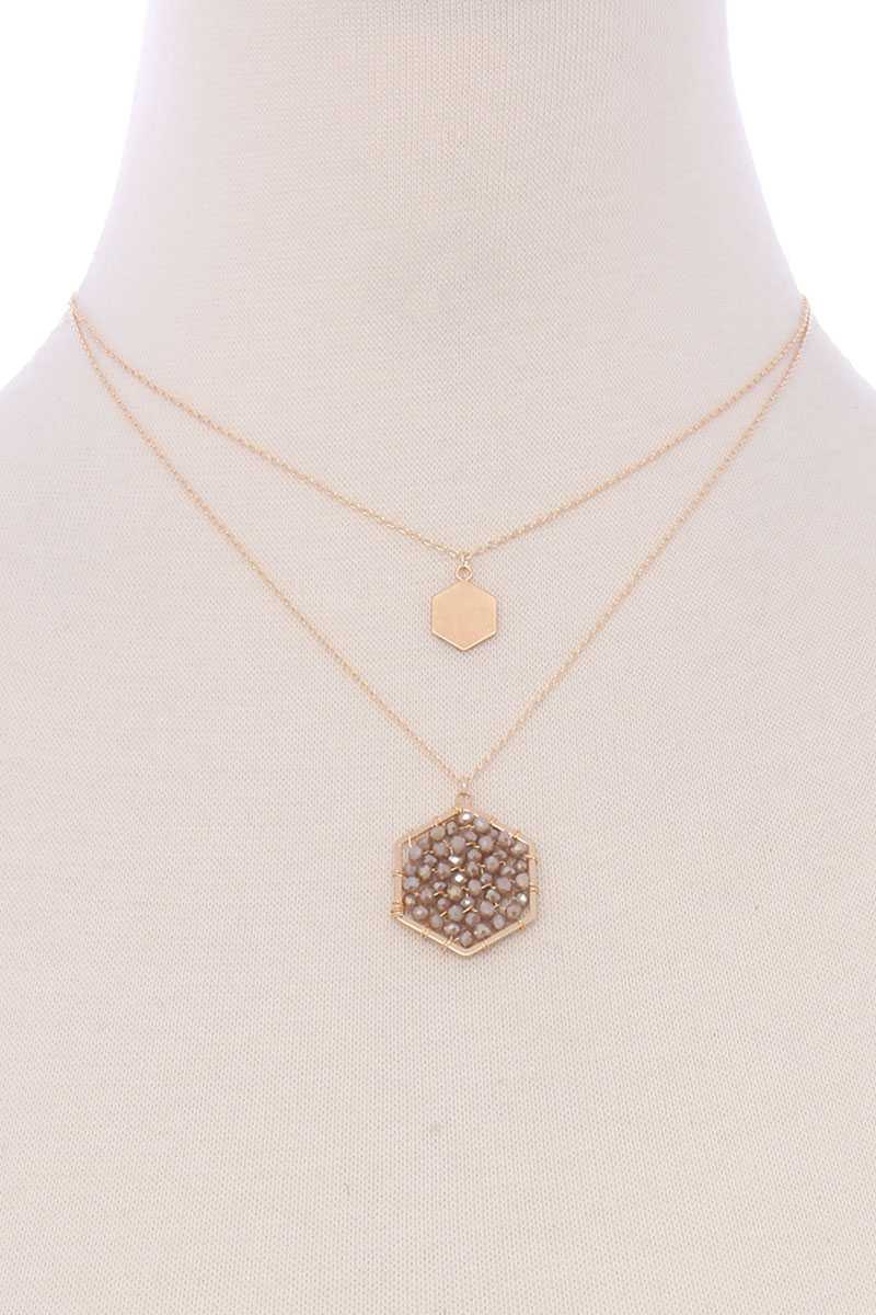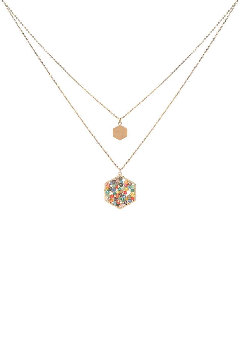 2 LAYERED GEOMETRIC GLASS BEAD PENDANT NECKLACE